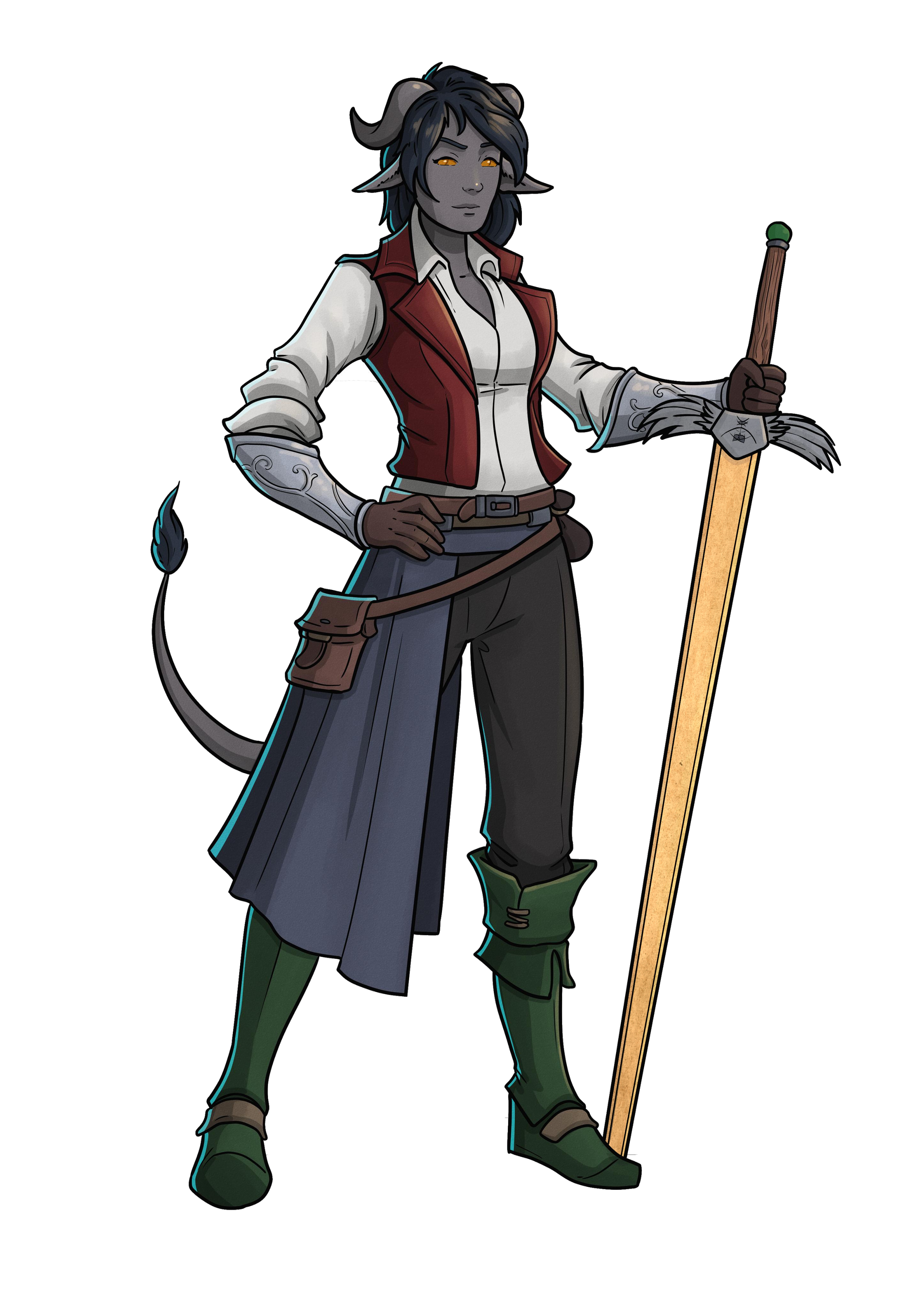 Born of a mortal and a fiend from the Corrupted Planes, Meliantha is a fiendblood, a living contradiction. Many expect her to be a monster—destructive, uncontrollable, and driven by an insatiable lust for battle. But she was raised in the sanctuary of a temple dedicated to the patron saint of guardians, her fiery nature tempered by lessons of self-sacrifice and control. She learned to stand not for destruction, but as a shield between the innocent and danger.